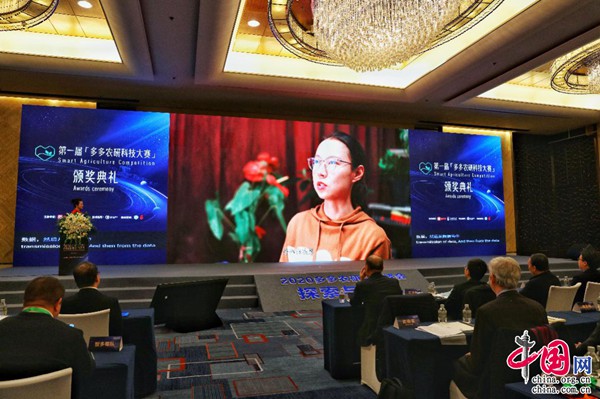 (中國(guó)工程院院士趙春江致辭,他表示數(shù)字技術(shù)正給中國(guó)農(nóng)業(yè)、農(nóng)村變革帶來(lái)重大發(fā)展機(jī)遇 龍遇春攝)