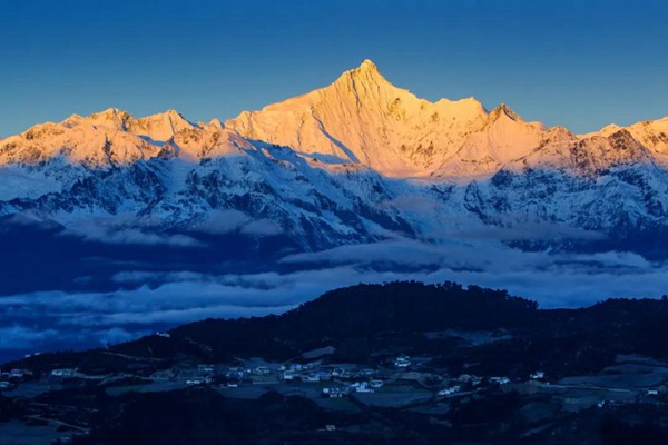 梅里雪山長期以來作為云南省迪慶州香格里拉市的一張名片,人們說:“香格里拉是云南旅游的王冠,而梅里雪山就是王冠上的明珠”,它擁有著“世界四大奇觀”——日照金山、日月同輝、明永冰川、雨崩村。