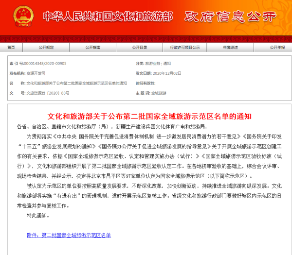 文旅部公告指出,被認(rèn)定為示范區(qū)的單位要按照高質(zhì)量發(fā)展要求,不斷深化改革,加快創(chuàng)新驅(qū)動(dòng),持續(xù)推進(jìn)全域旅游向縱深發(fā)展。文化和旅游部將實(shí)施“有進(jìn)有出”的管理機(jī)制,適時(shí)開展示范區(qū)復(fù)核工作。省級(jí)文化和旅游行政部門要做好轄區(qū)內(nèi)示范區(qū)的日常檢查并參與復(fù)核工作。(楊婧瑤)