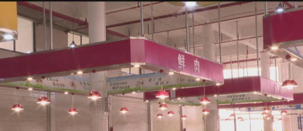 市場管理業(yè)主介紹;“從顏色就可以看出來,紅色是肉類區(qū)和熟食,綠色是果蔬,這些都是按照部門的指導來做,商鋪入場后就按照這個標準來分類經(jīng)營?!?/p>