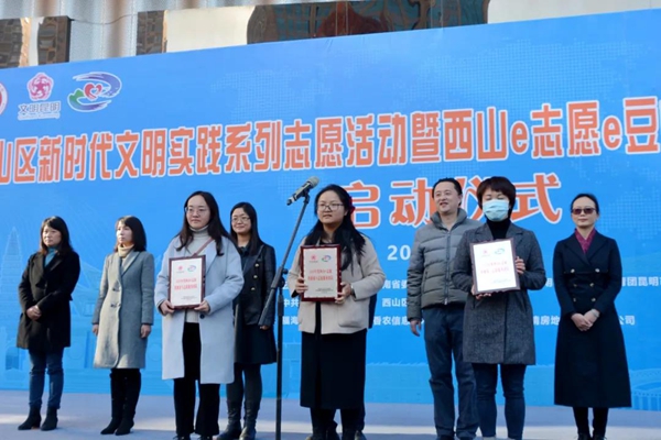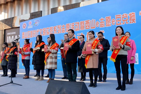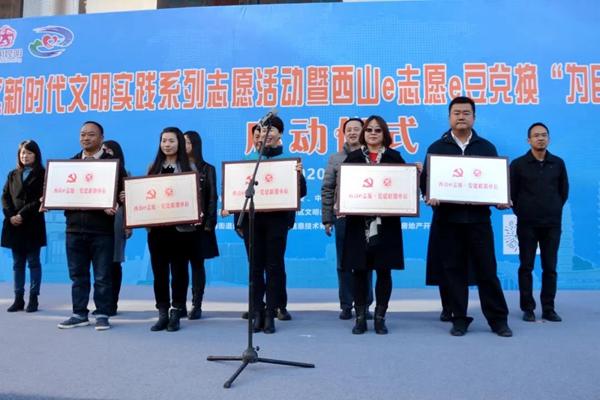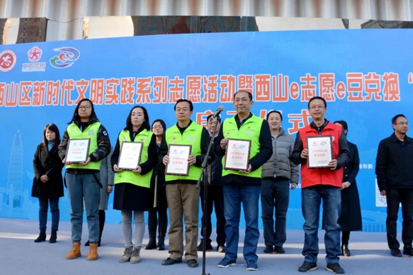 活動啟動儀式上,對“西山e志愿”優(yōu)秀個人、優(yōu)秀團隊等先進典型進行了授牌,并進行心愿“點亮”及傳遞儀式,隨后組織聯(lián)盟商家向志愿者開展“e豆”兌換活動。