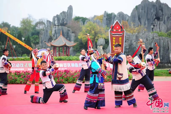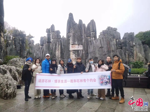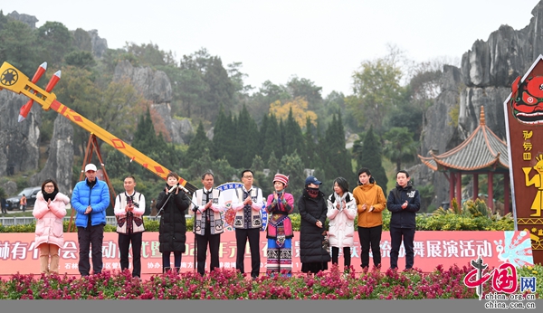 2021年元旦,由石林風(fēng)景名勝區(qū)管理局和廣東南方衛(wèi)視共同打造的“我和石林有個約會”——漫游石林·慢享生活活動啟動儀式舉行。六名在“我和石林有個約會——漫游石林·慢享生活——石林旅游體驗(yàn)師招募大行動”中脫穎而出的旅游博主和攝影達(dá)人,現(xiàn)場觀看了精彩的民族歌舞演出,參與了“學(xué)說彝族話”“學(xué)跳大三弦”“猜新娘”等互動游戲,陣陣掌聲與歡笑將現(xiàn)場氣氛不斷推向高潮。