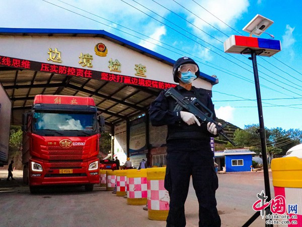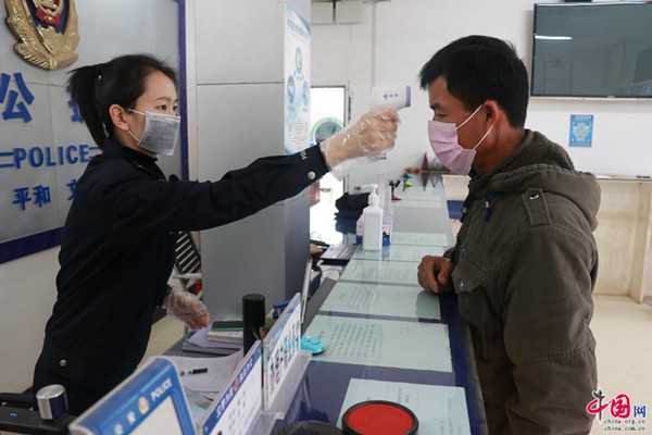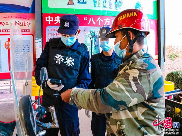 (蘇平(左一)核查進出邊境地區(qū)人員)