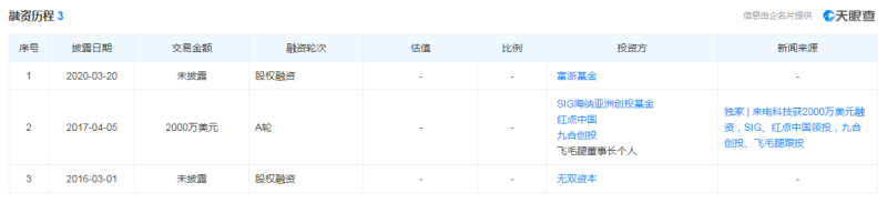 但比起“三電一獸”的其他三家,來電科技似乎并不受資本青睞。天眼查信息顯示,自成立至今,來電科技共完成三輪融資,投資方包括富浙基金、SIG海納亞洲創(chuàng)投基金、紅點(diǎn)中國、九合創(chuàng)投、飛毛腿董事長個(gè)人、無雙資本等。