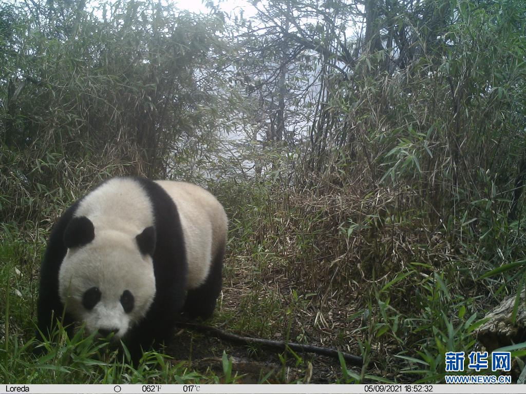 這是安裝于四川省都江堰龍池小草坡區(qū)域的紅外線相機拍攝到的野生大熊貓活動畫面(5月9日攝)。