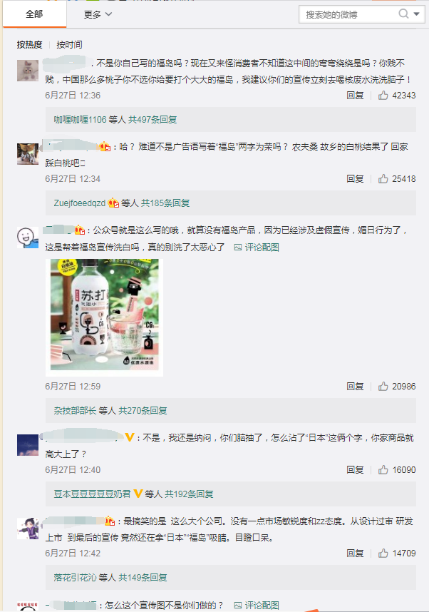 農(nóng)夫山泉官方微博網(wǎng)友評論截圖
