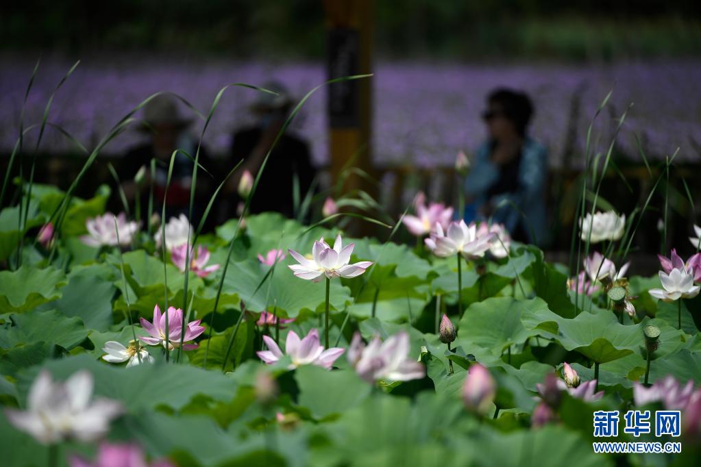 近日,位于寧夏銀川市興慶區(qū)的鳴翠湖國家濕地公園荷花競相開放,吸引眾多游客前來賞花、避暑。