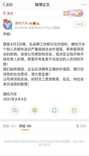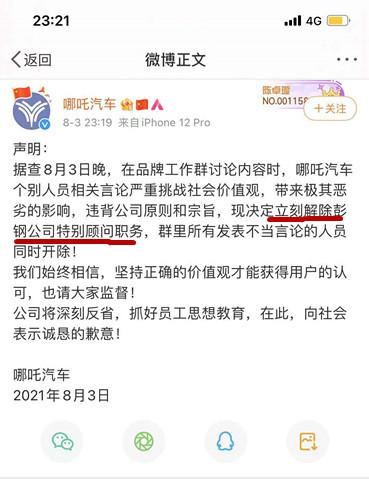 標(biāo)簽:汽車,哪吒,開除,言論,聲明