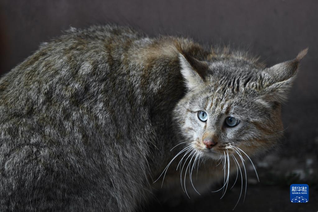 這是5月1日在西寧野生動物園拍攝的一只人工救助的荒漠貓。
