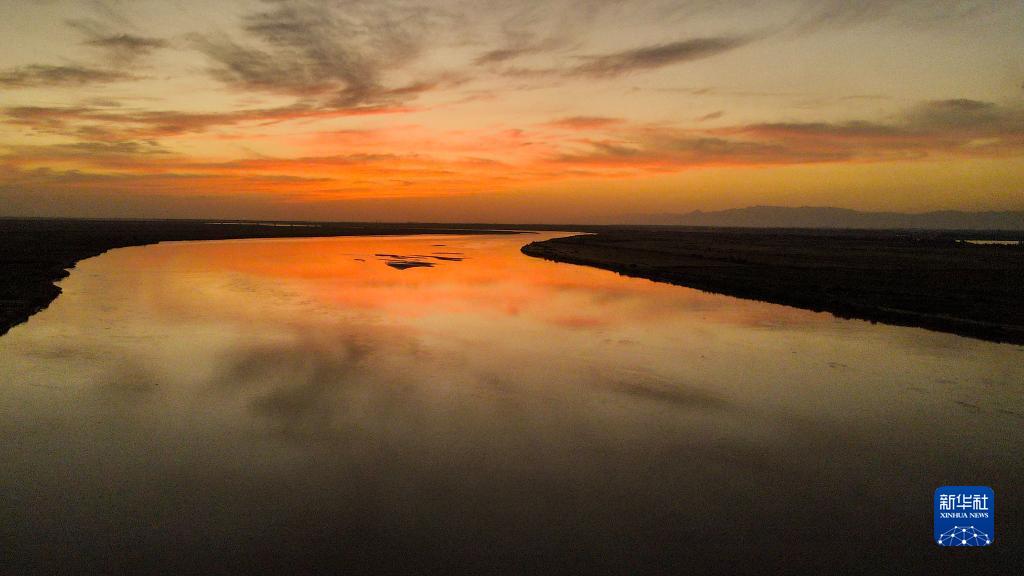 這是在內(nèi)蒙古鄂爾多斯市達(dá)拉特旗境內(nèi)拍攝的黃河夕照景觀(9月26日攝,無(wú)人機(jī)照片)。