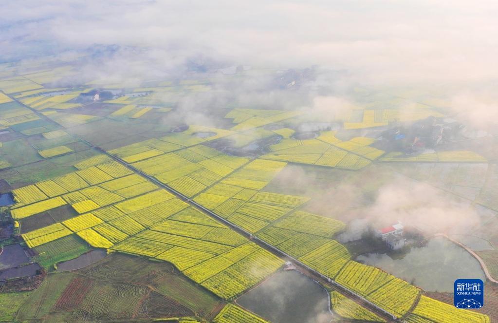 3月8日拍攝的湖南省衡陽縣臺源鎮(zhèn)田園風(fēng)光(無人機(jī)照片)。