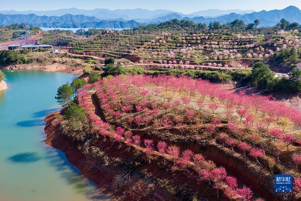 3月8日拍攝的浙江省杭州市淳安縣界首鄉(xiāng)春日景色(無(wú)人機(jī)照片)。