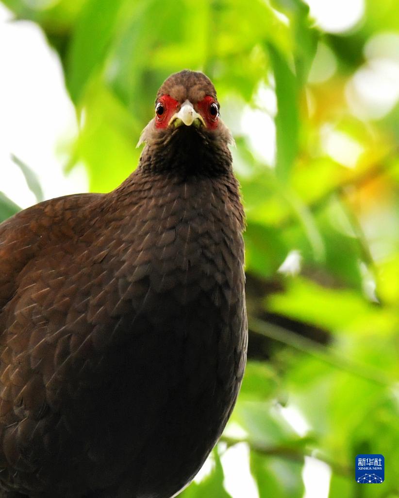在福州金雞山公園,一只白鷴在樹叢里覓食(3月27日攝)。