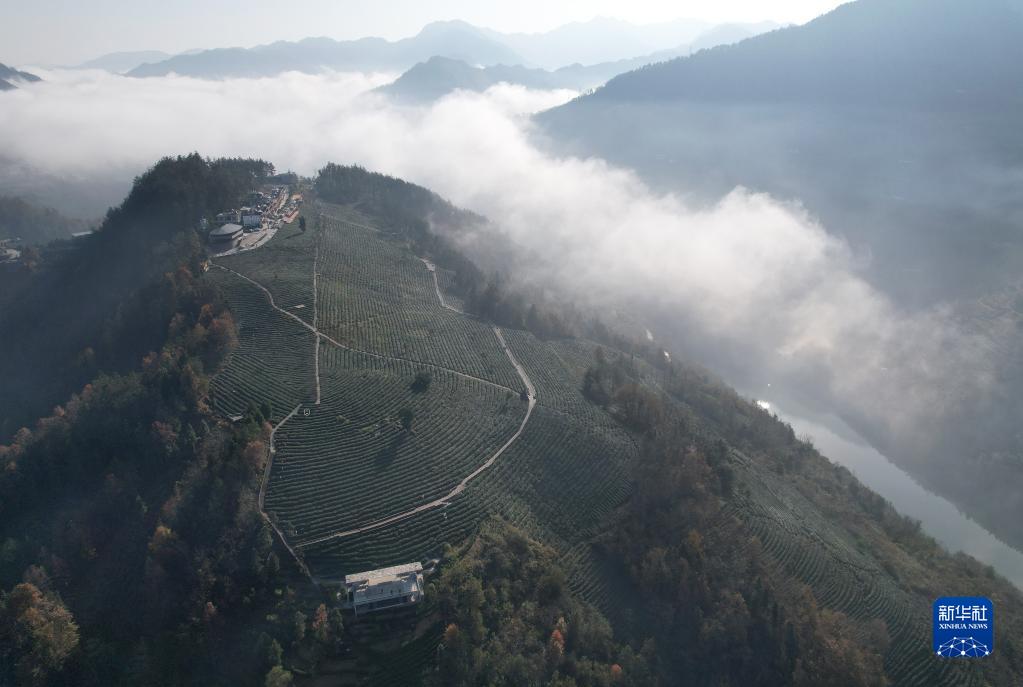 安康市紫陽縣向陽鎮(zhèn)營梁村茶山景色(2021年11月24日攝,無人機照片)。
