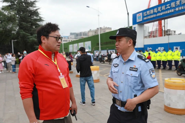 分局執(zhí)勤民警、輔警協(xié)助交警對考點附近部分路段合理設置禁行區(qū),采取臨時交通管制,勸導亂停亂放車輛,保障考點附近交通安全、暢通、有序。