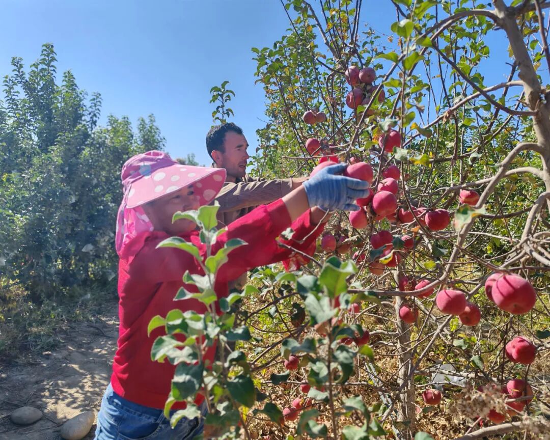 走進(jìn)澤普縣現(xiàn)代富民產(chǎn)業(yè)園的蘋果種植基地,空氣中彌漫著淡淡的果香。一眼望去,果樹整齊排列,樹枝被飽滿的果實(shí)壓得微微下垂,工人們穿梭在果樹間,小心翼翼地采摘果實(shí),將采摘好的蘋果裝入筐中,分揀、稱重,現(xiàn)場(chǎng)分工明確、干勁十足,每一個(gè)人的臉上都洋溢著豐收的喜悅。