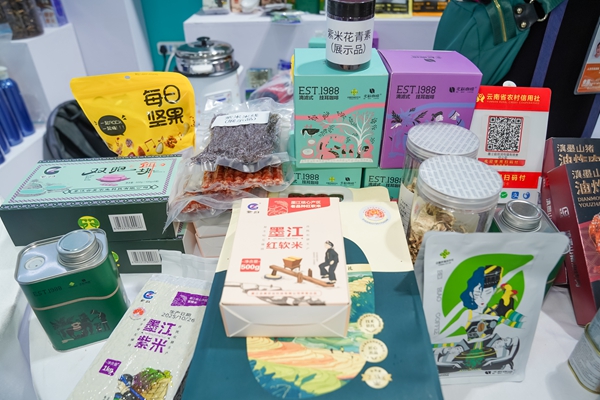 展區(qū)內(nèi),墨江特色農(nóng)產(chǎn)品憑借綠色生態(tài)的品質(zhì)、鮮明的地域特色和深厚的文化底蘊(yùn),贏得了參展嘉賓與觀眾的廣泛關(guān)注。作為國(guó)家地理標(biāo)志產(chǎn)品,墨江紫米孕育于哀牢山余脈的哈尼梯田,汲取高原沃土與純凈山水的滋養(yǎng),顆粒飽滿、營(yíng)養(yǎng)豐富;北回歸線上鳳凰山核心產(chǎn)區(qū)淬煉的“水之靈”“鳳凰窩”等普洱茶,香氣醇厚、韻味悠長(zhǎng);三江五河潤(rùn)澤而成的“滇墨山豬”系列熟食、雙胞豆咖啡等特色產(chǎn)品,全方位展現(xiàn)了“哈尼之鄉(xiāng)、回歸之城、雙胞之家”的獨(dú)特生態(tài)稟賦與產(chǎn)業(yè)特色,彰顯了云南邊疆民族地區(qū)產(chǎn)業(yè)發(fā)展的堅(jiān)實(shí)基礎(chǔ)。
