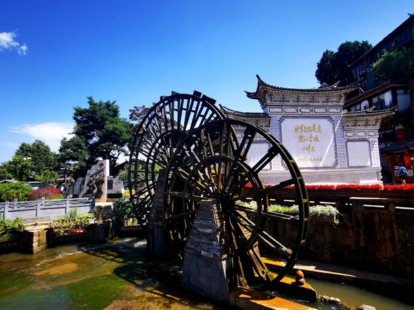 人們常說柔情似水,一座有水的城市總是多情的。源自雪山的玉河水在古城北門大水車分成三條支流,再潺潺向古城內大街小巷延伸。如今,大水車的功能早已從農(nóng)耕灌溉轉變?yōu)槲幕笳鳎V說麗江人千年來依水而居的歷史。