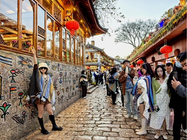 麗江的繁榮與包容,宛如一塊強大的磁石,吸引著來自五湖四海的各民族同胞。2025年1至10月,麗江古城景區(qū)累計接待游客2076.48萬人次,日均接待數(shù)6.83萬人,同比增長10.17%。年復一年,人們?yōu)樾闹械摹霸姾瓦h方”奔赴而來,在“雪山為屏、活水為城”的麗江,漫步巷道石橋、走進詩禮人家、感受漫卷書香,尋找心底里最柔軟的故鄉(xiāng)。