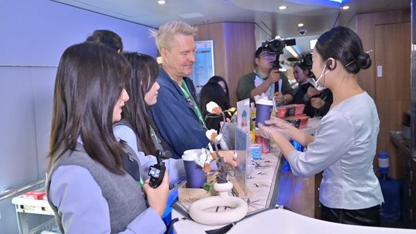 登上中老鐵路,一場穿越瀾湄秘境的旅程正式開啟。列車穿行在滇南林海與元江大橋之間,窗外是四季常青的橡膠林,遠(yuǎn)處是錯落有致的傣家竹樓,沿線車站的中老英三語標(biāo)識、車廂內(nèi)的雙語服務(wù)手冊,無不彰顯著“民心相通”的細(xì)膩考量。烏克蘭網(wǎng)紅蘭薇指尖輕撫乘務(wù)員制服上的絲路花語紋樣,認(rèn)真聆聽設(shè)計(jì)寓意。當(dāng)看到以孔雀羽毛為核心、大象為基底的冰箱貼文創(chuàng),以及專屬的“五色中國結(jié)”標(biāo)識時,她不禁贊嘆:“每一個細(xì)節(jié)都藏著跨文化的溫柔共鳴?!?/p>