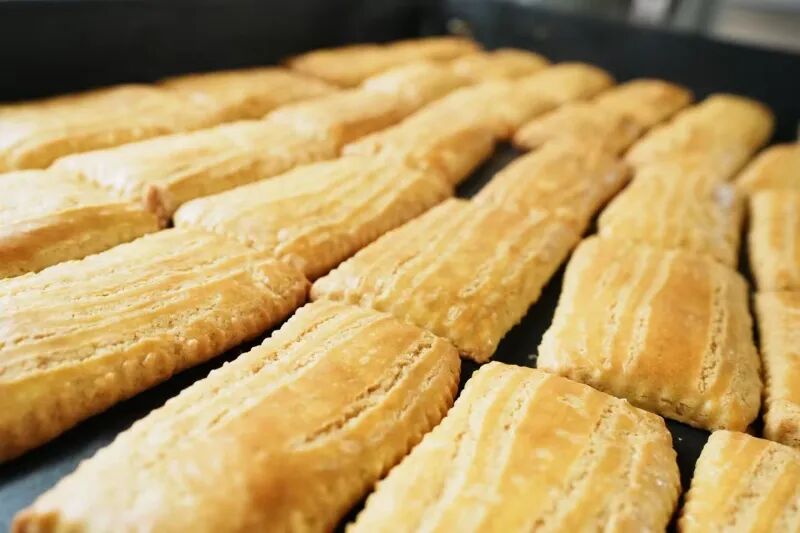 這種“本土面粉+本土風味”的創(chuàng)新邏輯,已成為這家面包坊的特色。從傳統(tǒng)的列巴、拿破侖的工藝升級,到大膽融合的辣皮子面包、香甜玉米酥,每一款產品都試圖講述一個關于塔城風土的故事。