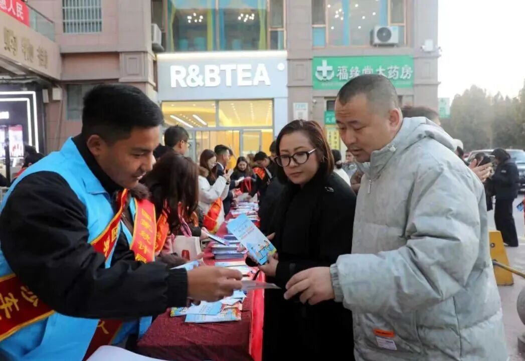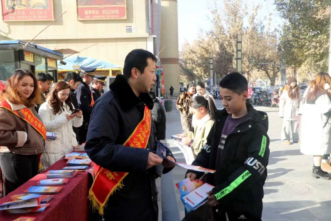 在金胡楊生活廣場(chǎng),工作人員通過(guò)設(shè)立咨詢點(diǎn),陳列憲法讀本、普法手冊(cè)等資料,主動(dòng)為過(guò)往居民講解公民基本權(quán)利、公序良俗等法律知識(shí)?!案刹坑么蟀自捴v清了受教育權(quán)、勞動(dòng)權(quán)這些權(quán)益,我聽(tīng)得明明白白?!本用駝⒑坡?tīng)完后感慨。