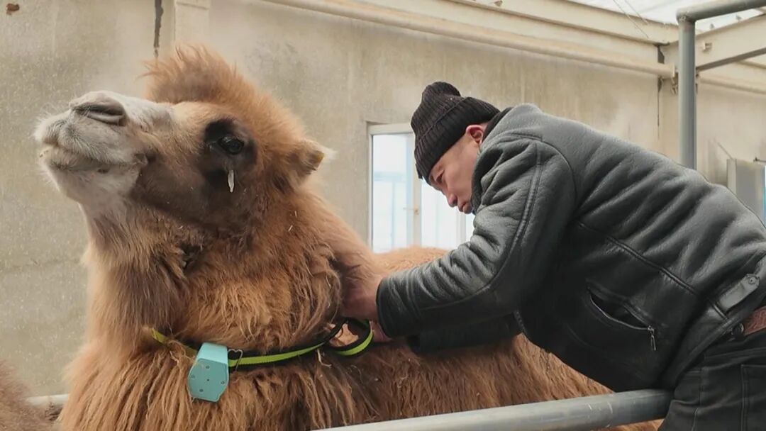 博斯坦鄉(xiāng)依爾喀巴克村的牧民正在為自家駱駝佩戴北斗項圈。劉瑞攝