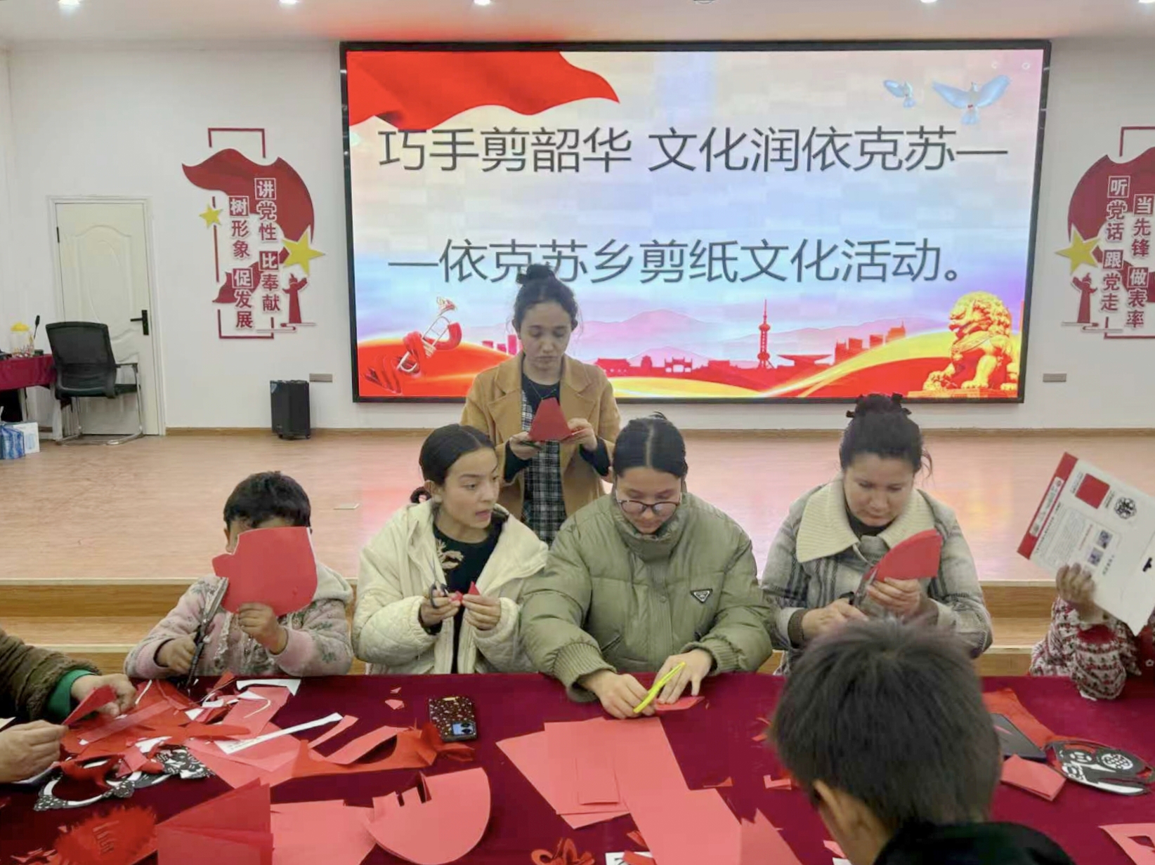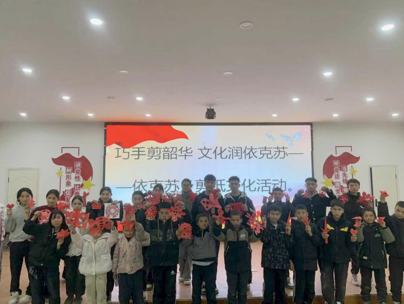 “以前覺得剪紙很神秘,今天親手試了才知道其中樂趣。老師教得耐心,我不僅學(xué)會了剪簡單的窗花,更深切感受到了傳統(tǒng)文化的魅力。”村民阿依古麗?買買提展示著自己的作品,臉上洋溢著笑容?;顒蝇F(xiàn)場吸引了老中青少不同年齡段的群眾參與,大家興致勃勃地挑選彩紙、埋頭創(chuàng)作,時而互相交流心得,時而請教老師指點。剪刀起落間,普通的紅紙被賦予了生命,一幅幅融合傳統(tǒng)韻味與個人巧思的剪紙作品相繼誕生,既有對古老技藝的傳承,也飽含對幸福生活的當(dāng)代描繪。