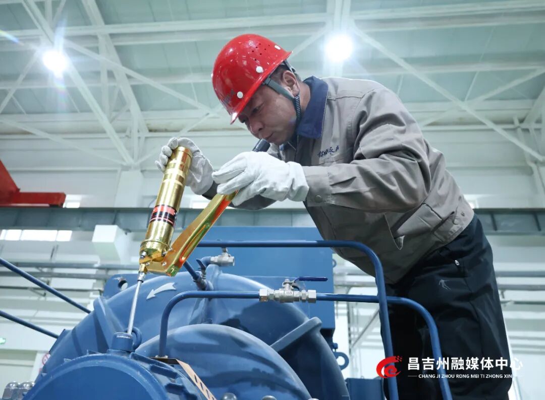 圖為在昌吉市新建長輸管網(wǎng)供熱項目2號中繼泵站,工作人員正在保養(yǎng)供熱設(shè)備。付小芳攝