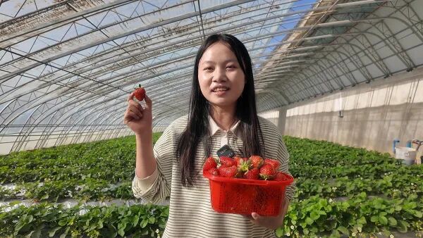 阿克薩拉依鄉(xiāng)友誼村同樣洋溢著豐收喜悅。該村依托產(chǎn)業(yè)大道區(qū)位優(yōu)勢(shì),在知名的雙柳樹烤肉店旁打造6座草莓大棚,近期已陸續(xù)成熟上市。飽滿的草莓如紅寶石般點(diǎn)綴綠葉間,清甜果香吸引游客慕名而來?!敖陙磬l(xiāng)村旅游升溫,游客逐年增多。我們精準(zhǔn)對(duì)接休閑采摘需求,打造草莓大棚,既豐富了鄉(xiāng)村旅游業(yè)態(tài),也拓寬了村民增收渠道?!秉h支部書記阿卜來提?艾尼說,“下一步將完善旅游配套設(shè)施、優(yōu)化采摘體驗(yàn),吸引更多游客感受墨玉鄉(xiāng)村魅力,帶動(dòng)村民就近就業(yè)增收?!?/p>