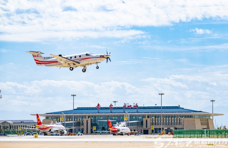 8月8日,奇臺江布拉克機場,飛往新疆和田的航班正在起飛。何龍攝