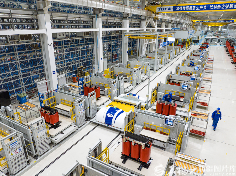 4月6日,昌吉市特變電工智能電氣有限責任公司數字化干式變壓器生產車間,工作人員在生產線上作業(yè)。何龍攝