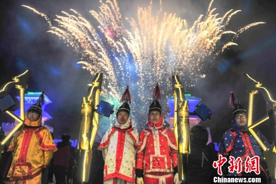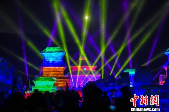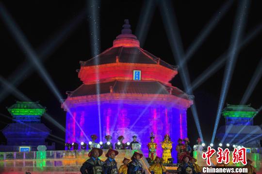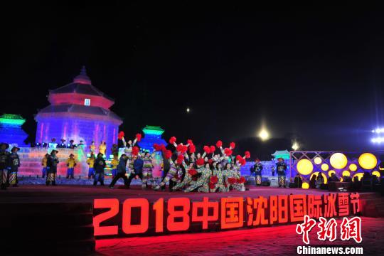 1月10日晚,以“滿韻清風(fēng)精彩盛京”為主題的2018中國沈陽國際冰雪節(jié)在棋盤山冰雪大世界“盛京壇城”主題冰雕展園內(nèi)開幕。