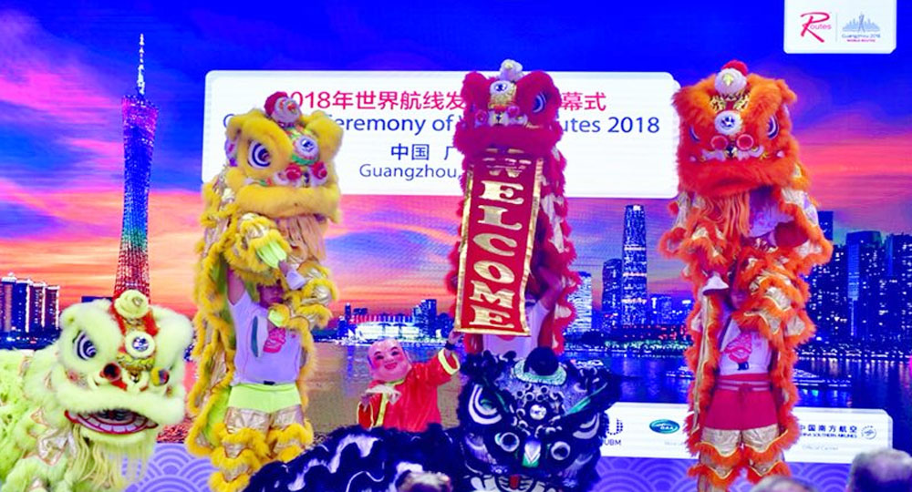 2018世界航線發(fā)展大會開幕式舞獅表演