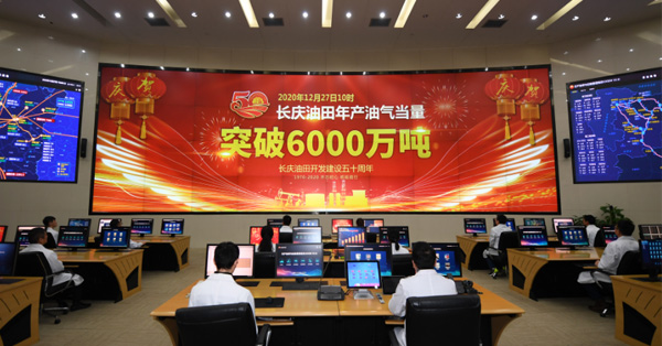 長慶油田油氣當量突破6000萬噸生產(chǎn)指揮中心現(xiàn)場