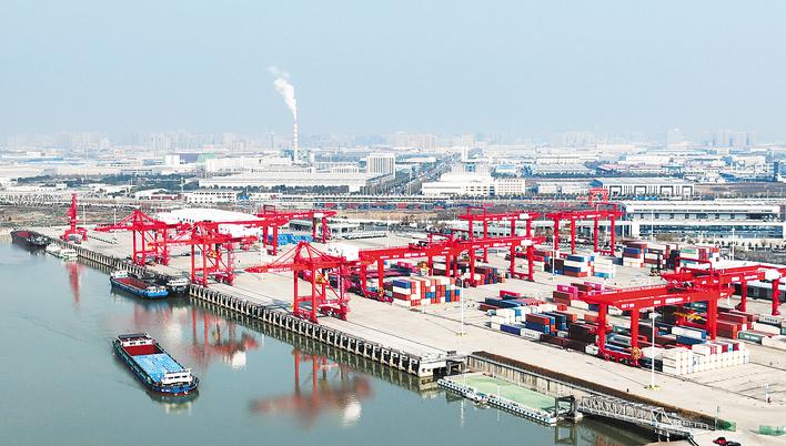 集裝箱吞吐量穩(wěn)步提升 1月3日拍攝的合肥港國際集裝箱碼頭。2023年,得益于合肥汽車出口迅猛增長以及家電、光伏的穩(wěn)定出口,安徽港口集團合肥有限公司累計完成集裝箱吞吐量45.4986萬標箱...