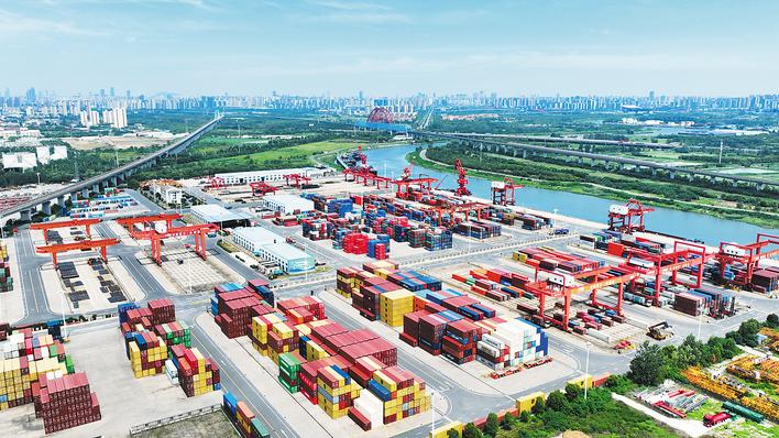 7月2日,航拍的合肥港國際集裝箱碼頭。2025年上半年,安徽港口集團合肥有限公司累計完成集裝箱吞吐量27.87萬標箱,同比增長8.24%。
