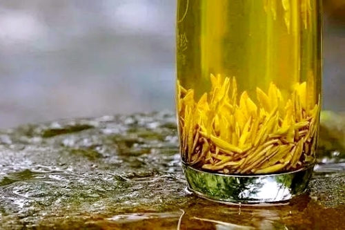 1999年春天,繆述鋼在滿園的茶青中,發(fā)現(xiàn)幾片金黃色的嫩葉,亮黃得搶眼。于是,就隨手把這幾片黃葉子揀了回來,并單獨炒制成茶。他發(fā)現(xiàn),泡出的茶水也呈金黃色,味道更醇更香。從那以后,這株野生茶樹被他們兄弟倆培育出了一個新品種。