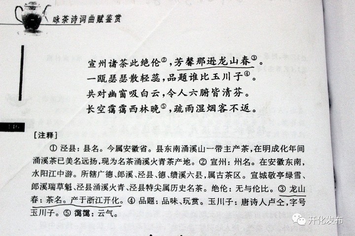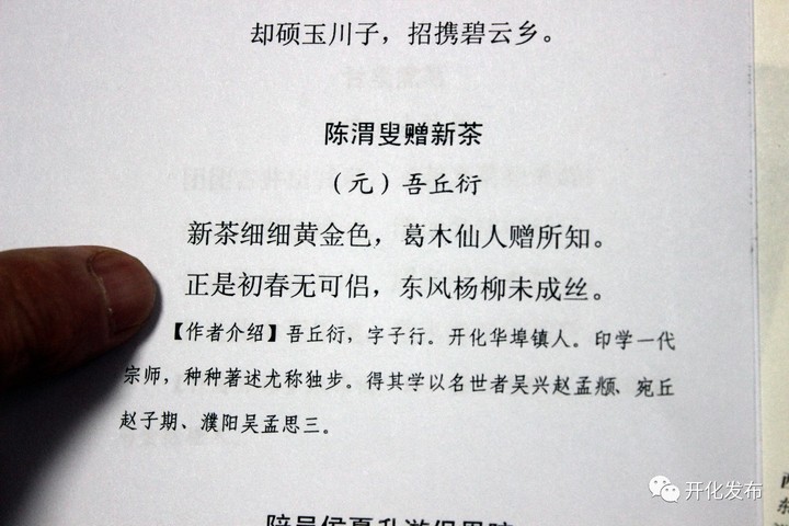 余根龍是開化縣特產(chǎn)局高級農(nóng)藝師,他指著清代著名畫家汪士慎的詠茶詩詞《幼孚齋中試涇縣茶》補充說道,汪士慎是‘揚州八怪’中與茶的交情最深的一位,并嗜茶如癖?!霸撛姟葜T茶此絕倫,芳馨那遜龍山春?!痪渲械摹埳酱骸⑨尀椴杳?,產(chǎn)于浙江開化。從詩人認(rèn)為宣州的茶葉已經(jīng)非常好了,不比開化茶葉差可以看出,在清朝初期,開化茶葉特別是芽茶已有相當(dāng)知名度?!?/p>