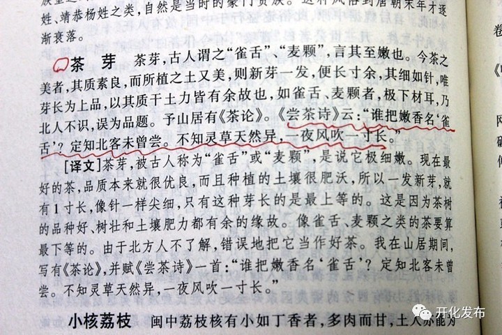 比如,北宋三州太守開化華埠鎮(zhèn)人江少虞在其所著在的《事實類苑》(入《四庫全書》)一書中就曾借用北宋政治家、科學(xué)家沈括的《嘗茶詩》來評價開化芽茶:“誰把嫩香名雀舌,定來北客未曾嘗。不知靈草天然異,一夜風(fēng)吹一寸長?!?/p>