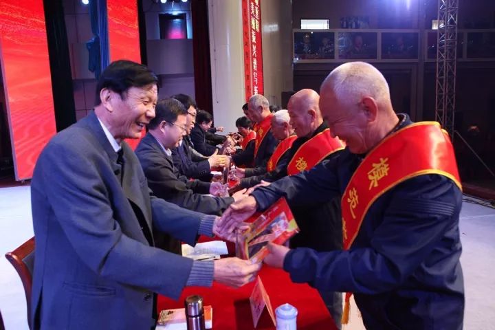 為“模范老人”進(jìn)行頒獎(jiǎng)