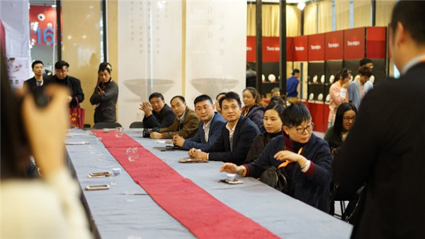 由貴州省畢節(jié)市七星關(guān)區(qū)政府代表和來自廣州、深圳、上海、臺(tái)灣等地的茶商、茶界知名人士?,F(xiàn)場(chǎng)品飲了由勐海雨林古茶坊茶葉有限責(zé)任公司提供的雨林珍藏,茶湯呈絢爛艷麗的濃金色,香氣濃郁,乍聞是霸氣鉆鼻的陳香,隨后糯香明顯,最后是清爽的蜜蘭香,茶湯入口更加有穿透力,輕輕一小口,苦甜感迅速在口腔炸開,猛烈但是舒適,回甘迅速襲來,生津汩汩,三兩杯就會(huì)酣暢淋漓。米飯香,稻花香,糯香,蘭香交替而來,意猶未盡。湯感已經(jīng)粘稠,但入口卻是感覺輕輕得“融化”在口腔。第二道現(xiàn)場(chǎng)品飲了畢節(jié)區(qū)特色茶品,并分享了當(dāng)?shù)氐牟枞~種植傳統(tǒng)和茶產(chǎn)業(yè)的發(fā)展現(xiàn)狀。