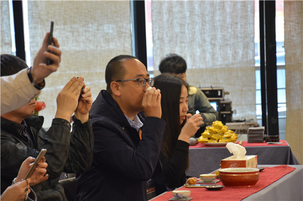 以“禪之音”主題樂團以禪、茶、樂為表現(xiàn)元素,為現(xiàn)場的茶友們奉上了一場視、聽、品的茶文化盛宴?,F(xiàn)場品飲了來自福州孝文家茶業(yè)有限公司的兩道茶:國風(fēng)肉桂和牛肉。第一道國風(fēng)肉桂采自武夷山核心景區(qū)名巖山場,國風(fēng)肉桂品質(zhì)精致,口感上乘。第二道孝文家茶牛肉,扎根武夷山富饒的土壤,飽飲清冽的泉水,轉(zhuǎn)化為豐富的葉片內(nèi)質(zhì)。加上專業(yè)的采摘、做青與精制碳焙,使得愛茶之人無不為喝到這里的茶而驕傲?,F(xiàn)場禪意裊裊、茶香濃郁的氛圍吸引了諸多茶友駐足凝神,這場素簡自然、別具匠心的茶樂演繹贏得了熱烈的掌聲。