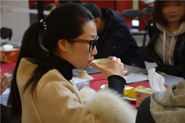 來自珠江經(jīng)濟(jì)臺(tái)及合作伙伴的愛茶人士,品鑒了云南雙江勐庫茶葉有限責(zé)任公司的兩道茶。第一道是“本味技語”,甄選自2007年的茶品,采用經(jīng)過十年不斷改良、提升的戎氏制茶技藝拼配而成,入口清爽,甜度極佳。第二道是“博君熟普”,同樣的年份,同樣的拼配工藝卻提煉出另一番醇厚順滑的口感,茶色愈濃,茶香四溢?,F(xiàn)場的茶友分享了廣東吃早茶的文化傳統(tǒng)和對(duì)茶的理解。