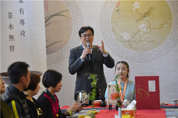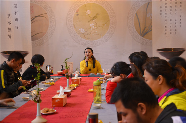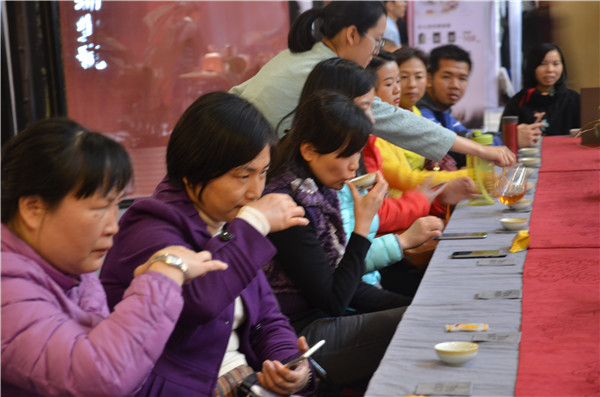 來自教育行業(yè)的茶友們一同分享了咸陽涇渭茯茶有限公司的2011年經(jīng)典1368茯茶和2017年的三寶官茶。茯磚茶以其最獨特的金花,有別于其他的黑茶品種。第一道經(jīng)典1368茯茶因誕生于1368年而得名,湯色橙黃明亮,口感醇滑柔和,雋香怡人,對腸胃有調(diào)節(jié)作用。第二道三寶官茶制成于2014年,存放三年后取出,耐泡易泡,且杯底留香,并獲得了此次茶博會的金獎。茶與教育專場活動期間,現(xiàn)場氣氛十分熱烈,茶友們借著一盞茶的時間,共享了一段美好的茶文化時光,也留下一段短暫別開生面的回憶。