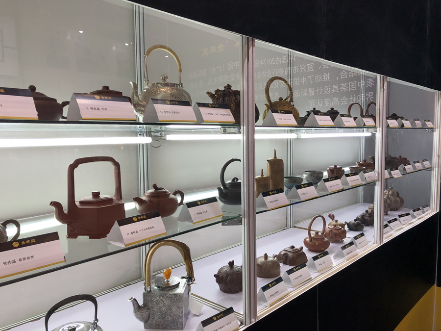 廣州茶博會現場設立的金羊獎作品展示區(qū),為觀眾朋友們集中展示了獲獎作品的精湛工藝,展現出茶具所蘊藏的匠心之美。