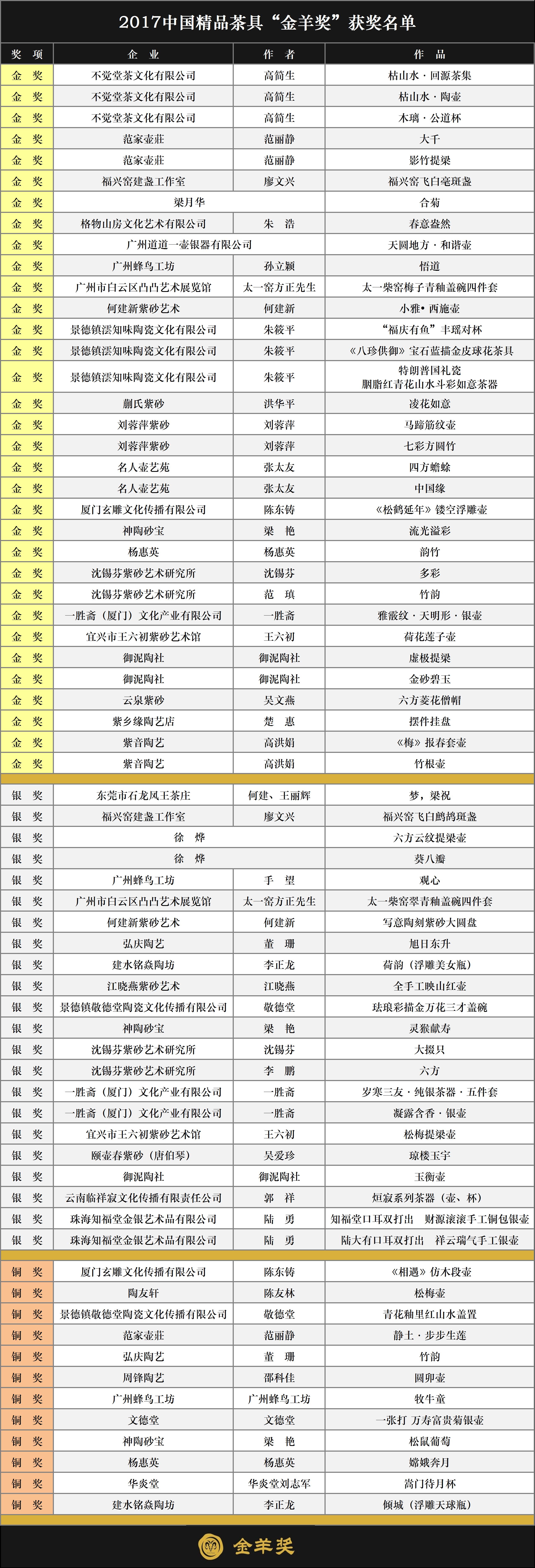 2017中國精品茶具“金羊獎”評選圓滿落幕