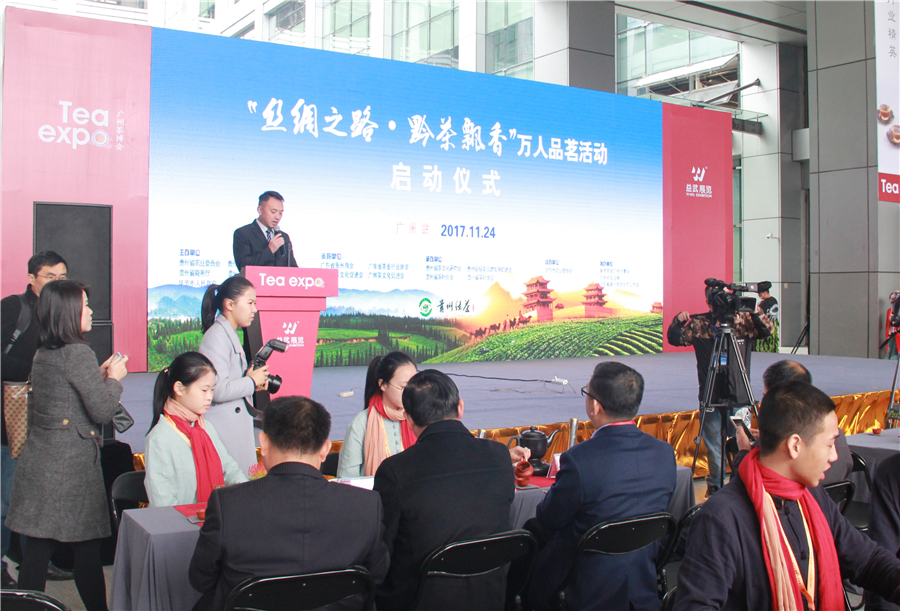 11月24日上午,“絲綢之路·黔茶飄香”廣州萬人品茗活動啟動儀式在廣州茶博會二樓中心舞臺成功舉行。