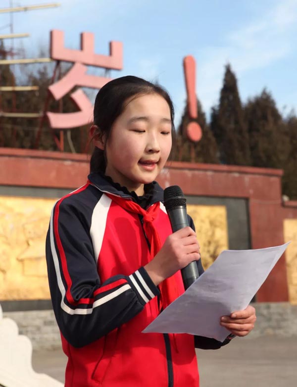活動在莊嚴(yán)的國歌聲中拉開帷幕,由少先隊員向毛主席塑像敬獻花籃并宣誓,振興新區(qū)原黨委書記、山西上黨振興集團董事長牛扎根整理花籃紅緞帶,全體人員莊嚴(yán)、肅穆向毛主席塑像進行三鞠躬,對毛主席的豐功偉績表示深深的敬意。