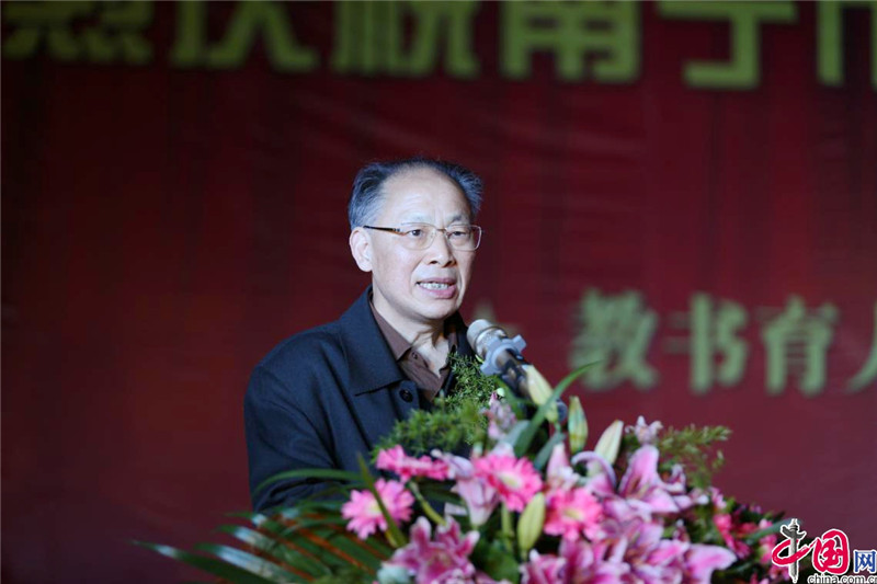 隆安縣教育局副局長(zhǎng)黃吉在慶典儀式上發(fā)表講話